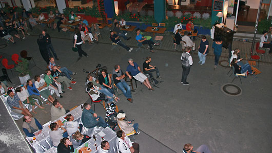 Etwa 350 Besucher waren der Einladung zur langen Filmnacht gefolgt. Zeitweise waren alle Sitzgelegenheiten belegt und manche Gäste hatten noch eigene Stühle mitgebracht. Andere nahmen einfach auf der Straße Platz.