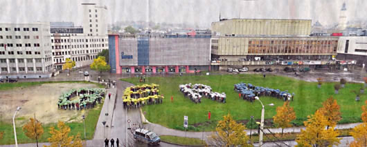 Trotz anhaltendem Regen kamen die Bürger in Geras Neue Mitte, um Teil der Kunstaktion für die Zukunft des Areals zu werden.